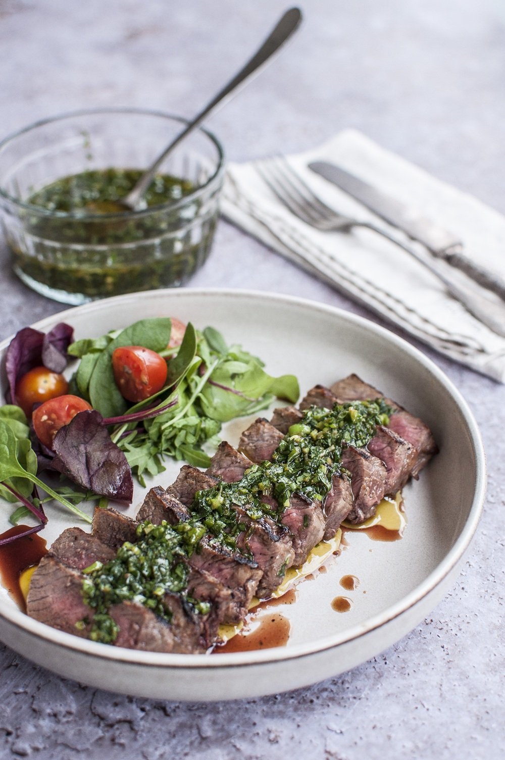 8. Stek z rostbefu z argentyńskim sosem chimichurri