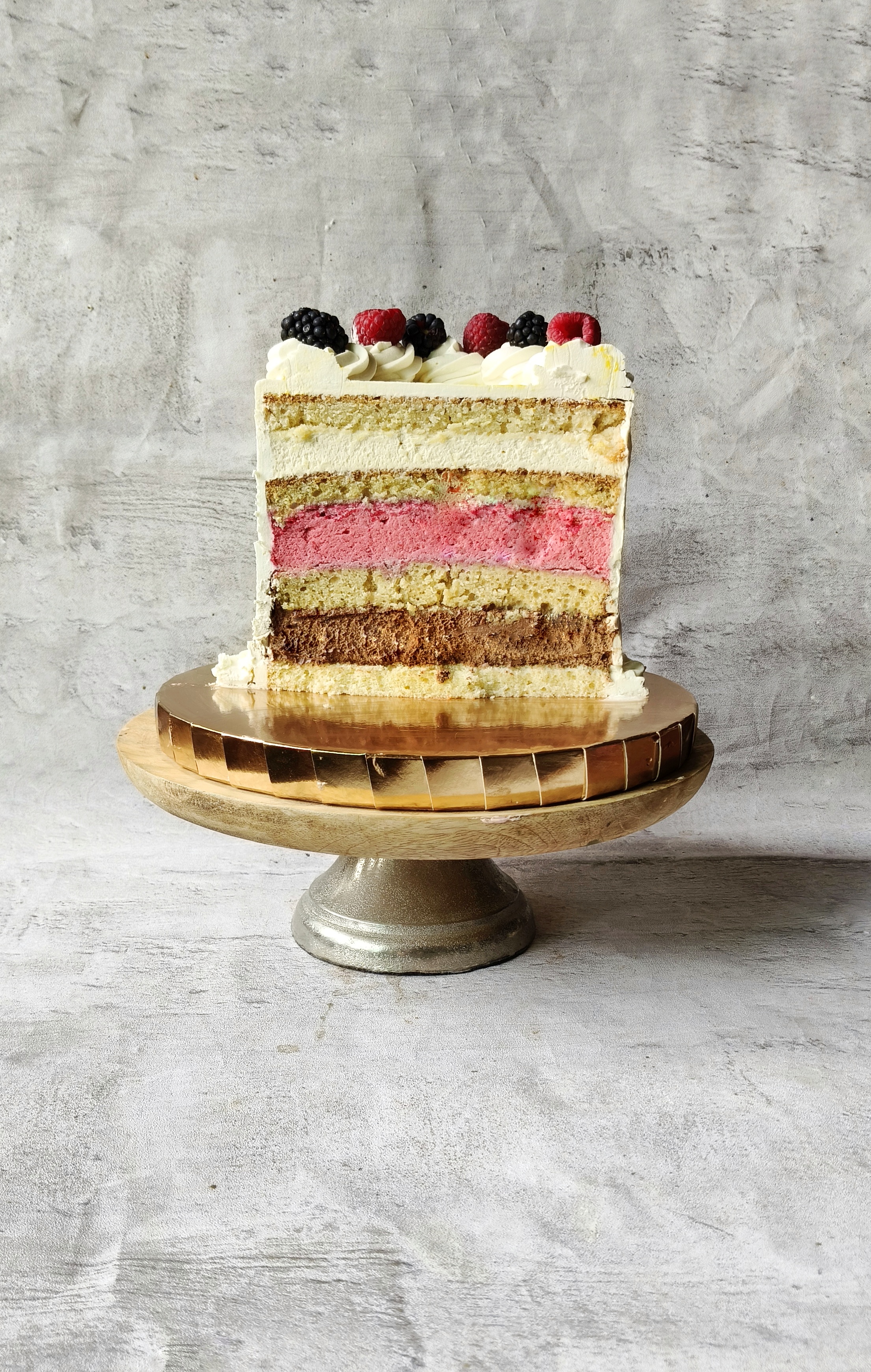 To, czego nie znajdziemy w tortach wegańskich to białko, zarówno to kurze, jak i z mleka krowiego. To właśnie ono odpowiada za stabilność i wiązania strukturalne ciasta czy kremów. Musimy zatem stosować produkty roślinne z jak najwyższą zawartością białka. Znajdziemy je m.in. w soi, grochu, soczewicy czy ciecierzycy. Moim ulubionym biszkoptem, ciastem jest ten na mleku sojowym lub na popularnej Aquafabie szczególnie tej odwodnionej, która ma w sobie więcej skoncentrowanego białka niż odsączona woda z puszki po ciecierzycy. Warto wtedy dodać do ciasta odrobinę skórki z cytryny lub pomarańczy np. od BIOVEGAN. Które dodadzą ciastu pięknego aromatu. Kremy możemy wykonać oczywiście z mleka kokosowego, ale lepsze będą musy z soków owocowych, najlepiej tych, które mają intensywny smak jak np. maliny, porzeczki, czy mango. Bezmleczna czekolada również sprawdzi się fantastycznie. Ważna jest też umiejętność pracy z agarem (np. od Amylon czy Bio Planet), czyli roślinnym zamiennikiem żelatyny. Jest to produkt, który w przeciwieństwie do tej drugiej wymaga zagotowania. Obniżając swoją temperaturę agar bardzo szybko i mocno ścina masę, w której został rozpuszczony. Nie wraca do poprzedniego, płynnego stanu nawet w temperaturze pokojowej co natomiast ma miejsce w przypadku żelatyny. Połączenie zimnej bezmlecznej śmietanki i ciepłej masy z agarem wymaga uważnej pracy z termometrem cukierniczym, aby z jednej strony nie doprowadzić do zważenia się kremu, a z drugiej do zrobienia z niego sztywnej galaretki.
