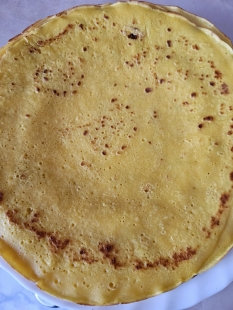 Makaron z naleśników dyniowo-cynamonowych z serkiem i owocami