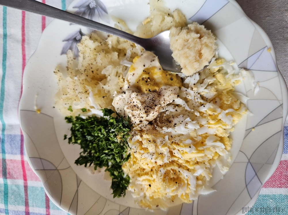 Pasta z gotowanego selera, jajek, pietruszki i chrzanu